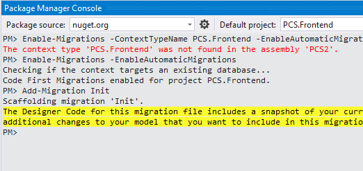 16. Open up Package Manager Console, and enable EF migration with this command: Enable-Migrations -EnableAutomaticMigrations