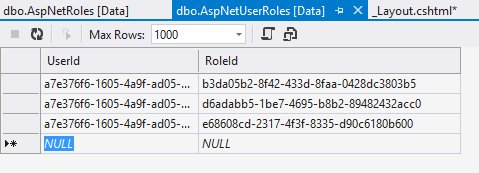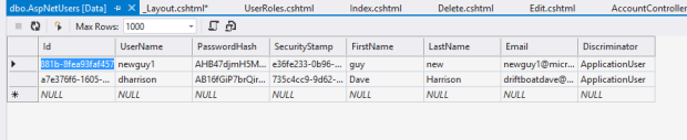 Note in the AspNetUsers table – I can see the dharrison row as our chosen admin.