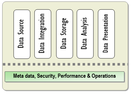 Microsoft’s BI best practices doc is pretty plain vanilla but it does break down DW into these pieces. Failing to understand any of these could mean wasting many, many man-years of effort and millions of dollars in rewrites.