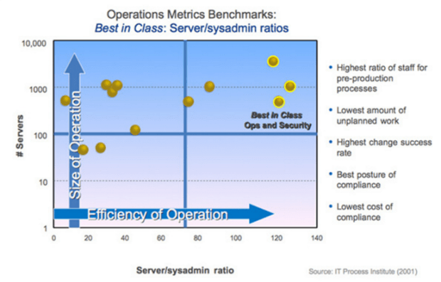 - Server to System Admins ratio 100:1 or greater (typical 15:1)